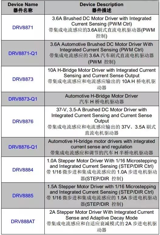 总之,最新系列电机驱动器中的集成电流感应可移除BOM中价格昂贵的功率电阻器,减少电路板尺寸、组件数量,并简化PCB布线。